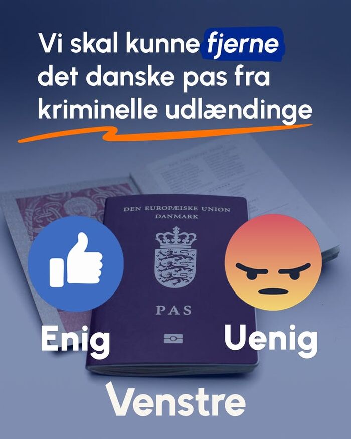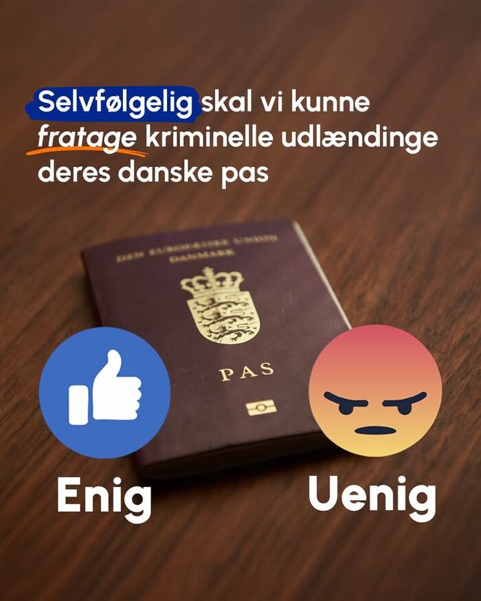 Det skal gøres lettere at fratage det danske pas fra indvandrere, der begår alvorlig kriminalitet! Enig? 👍